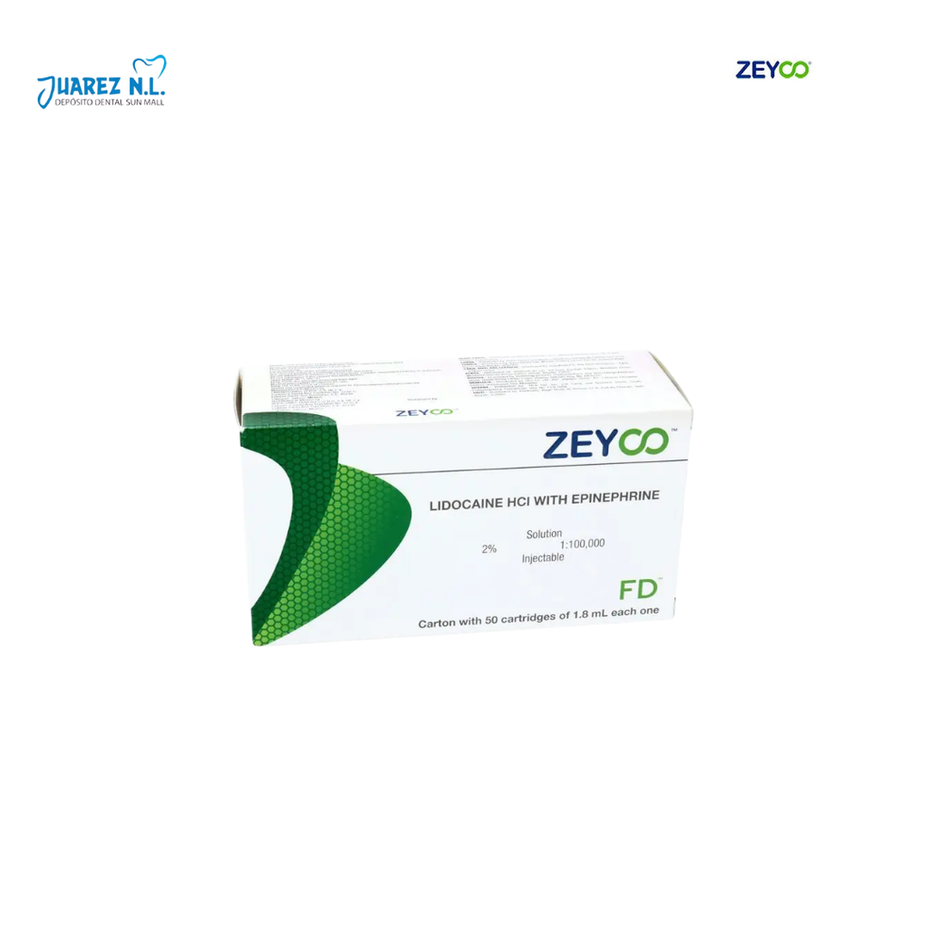 Lidocaína FD 2% anestesia lidocaína HCI con epinefrina Zeyco. Indicado para procedimientos que requieren prioridad hemostática como endodoncias y cirugías
