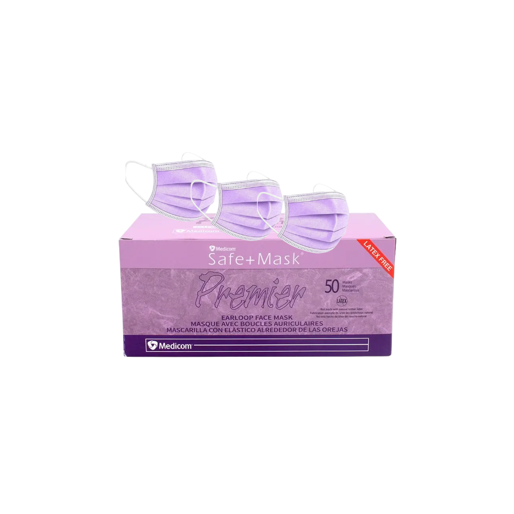 Adquiere protección profesional con estilo. Los cubrebocas Medicom en elegante color lila combinan seguridad de grado médico con un toque distintivo. Presentación en caja completa de 50 piezas, ideal para consultorios, clínicas y uso prolongado.