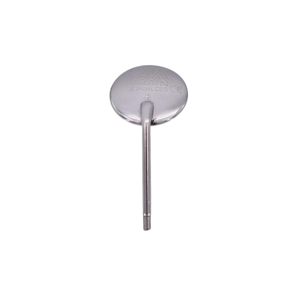 Reemplaza la cabeza de tu espejo dental con el Espejo Dental #4 Arain Repuesto, la solución económica para mantener tu instrumental en óptimas condiciones. Cabeza de recambio individual tamaño #4 fabricada en acero inoxidable con superficie reflectante de alta calidad. Compatible con mangos estándar de espejos dentales.