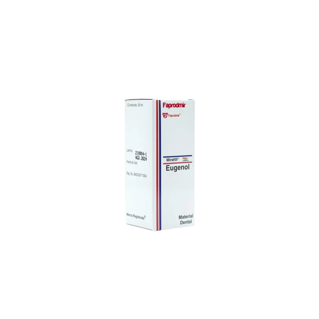 Prepara cementos temporales de alta calidad con Eugenol Faprodmir, el líquido endurecedor esencial para mezclar con óxido de zinc. Calidad farmacéutica que garantiza fraguado uniforme, propiedades sedantes y acción antibacteriana. Indispensable en cualquier consultorio dental.
