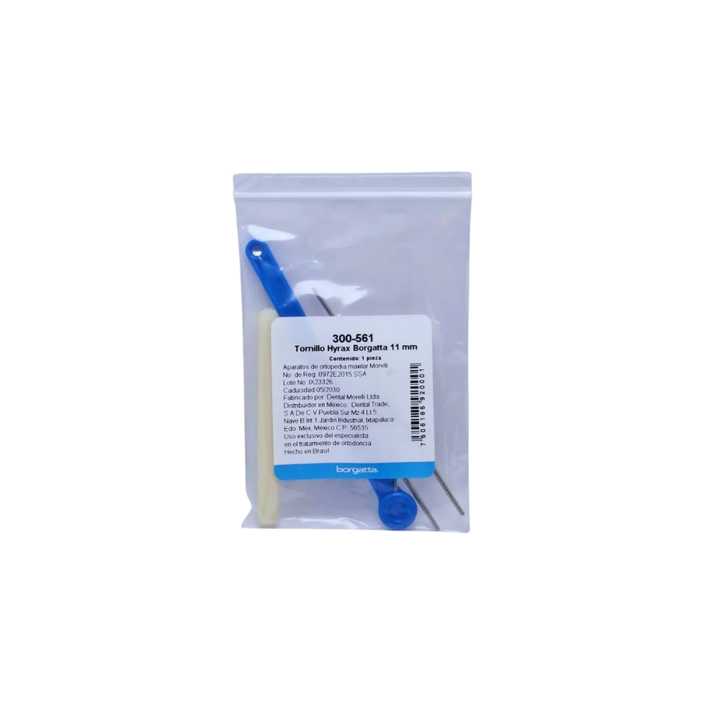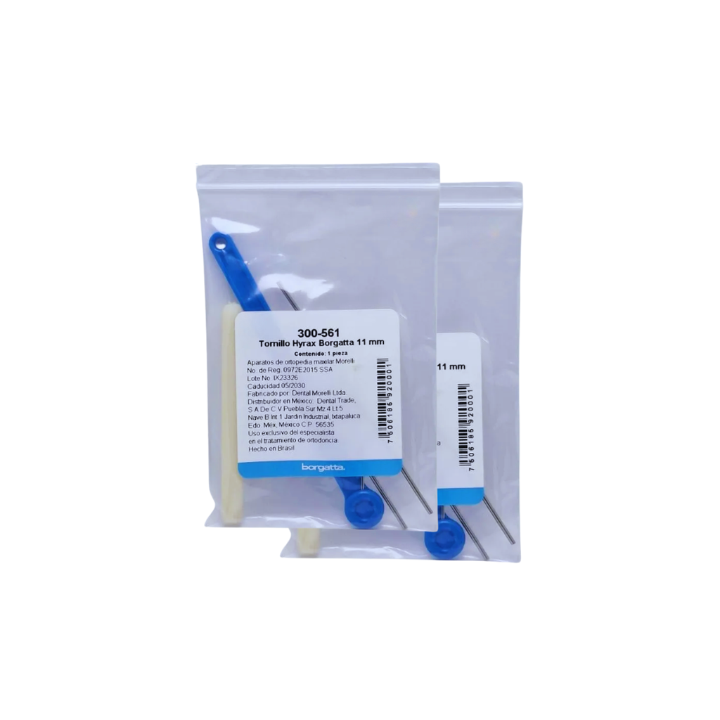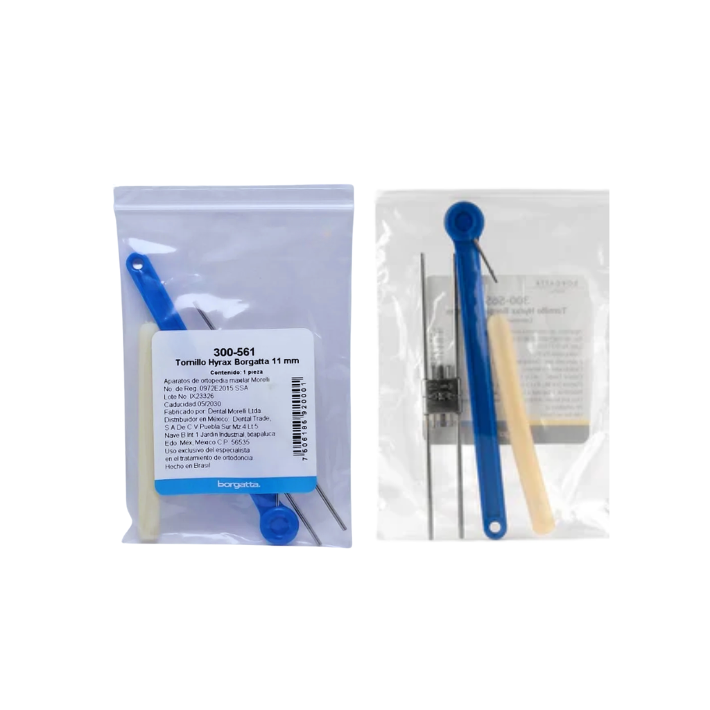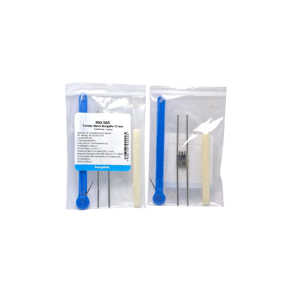 Los Tornillos Hyrax Borgatta son dispositivos ortodónticos de expansión palatina diseñados para corregir problemas de mordida cruzada y estiramiento maxilar. Fabricados con materiales de grado médico, estos tornillos ofrecen resultados predecibles y duraderos en tratamientos de ortodoncia.